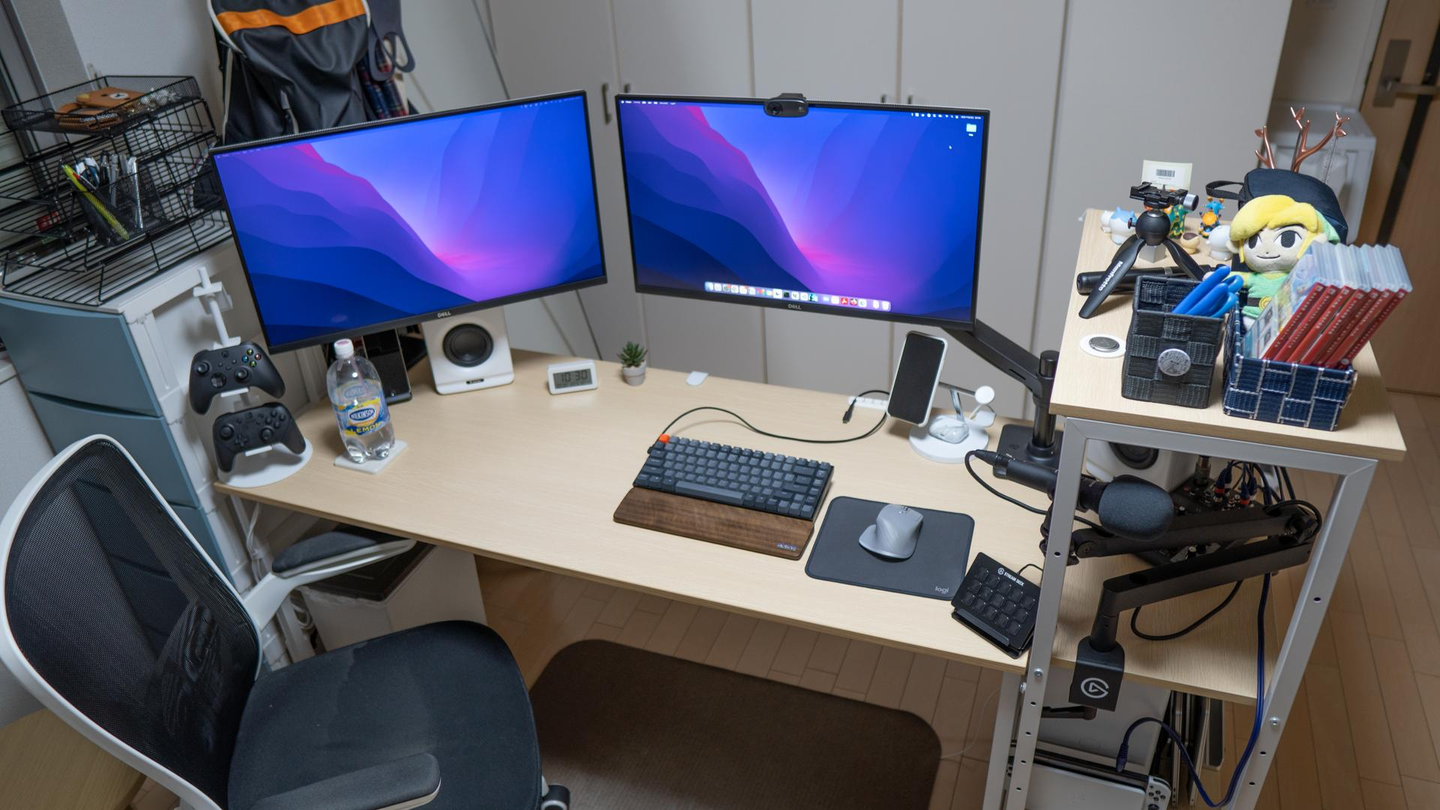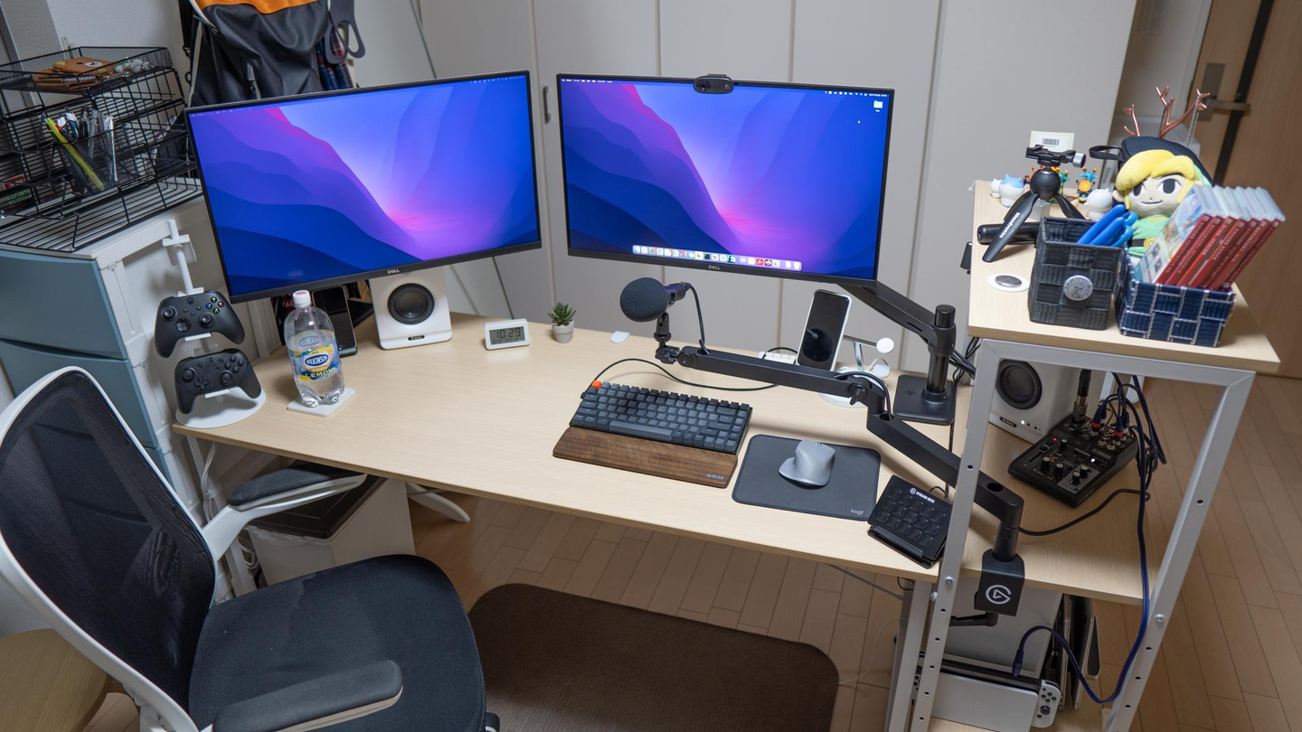 ミーティングの画面とドキュメントなど、同時に見たい要素がある場面は多いので、ディスプレイは2つ以上あると快適 個人的には視界に収まるサイズで作業領域が広い27インチQHDがおすすめ ディスプレイサイズの目安は [ FullHD: 24インチ, QHD: 27インチ, 4K: 31インチ ] ※解像度とサイズが合わないと見にくいため 2. ディスプレイの設置もアームがおすすめ