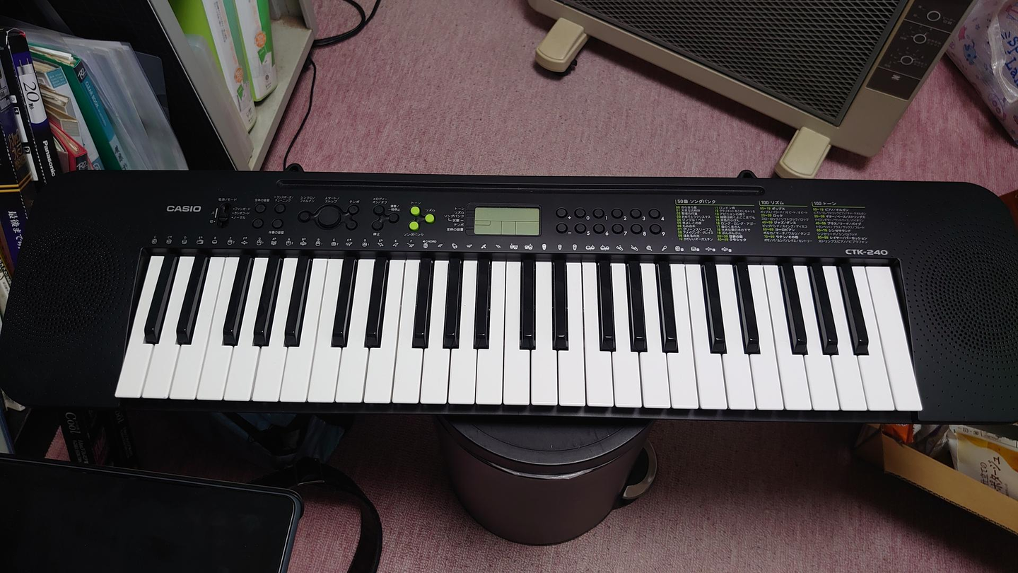 4. キーボード「 CTK-240 」 机の横のゴミ箱の上に「CTK-240」というキーボードを置いてます。たまに弾いてます。YMOの「RYDEEN」など。