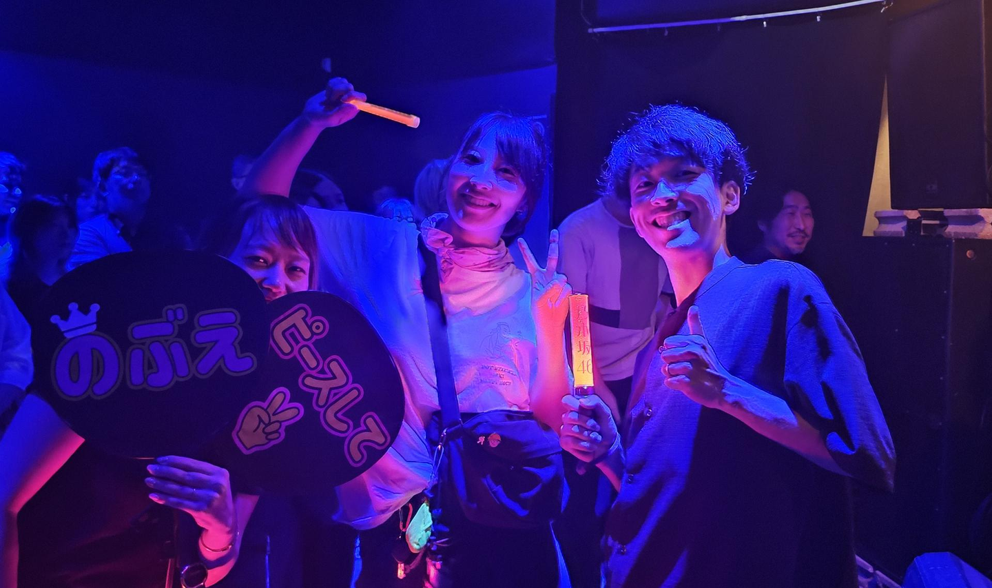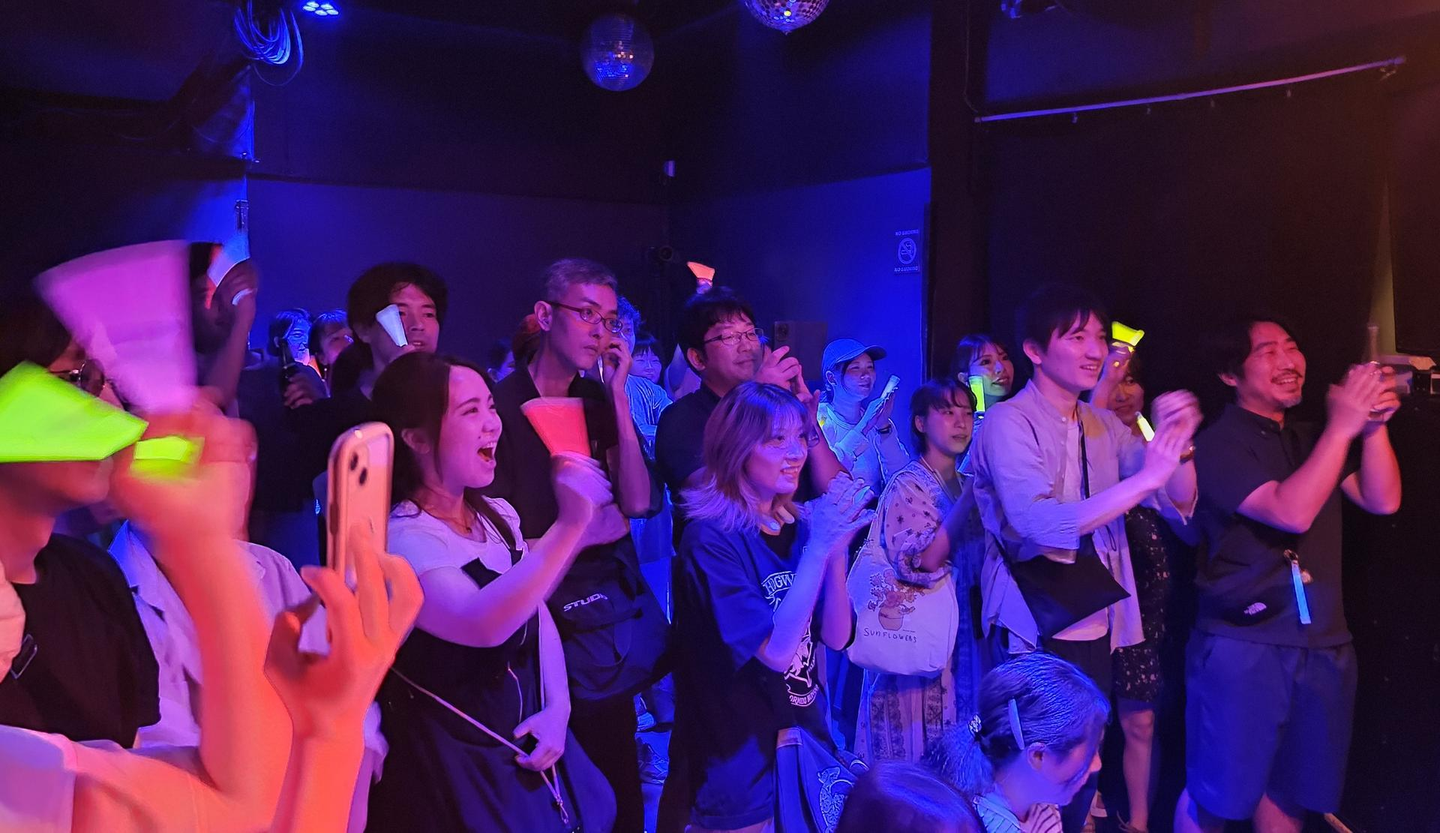 真夏の猛暑の中、社員やその家族、出演者の友人たちが応援に駆けつけた。手作り団扇やペンライトを振る姿はまるでアイドルのステージのよう。