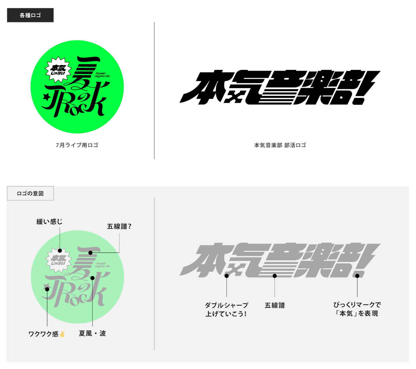 「ゆるい」ライブというコンセプトから、ロゴではその「ゆるさ」から夏風や波の曲線のイメージをメインに、夏というワードから感じるわくわく感や遊びを表現しようと試行錯誤しています。特に「夏」の上の部分は本気音楽部の部活ロゴでもモチーフにしている五線譜をゆるーくあしらい、部活ロゴと共通の遺伝子を持たせました。業務からは離れ、イマジネーションの赴くままにデザインを行うことは、大きな声で歌ったり、楽器を自由に演奏するのと同じような爽快感が得られるように感じます。ロゴ制作も本気音楽部の活動の一部なんだなあと感じながら、全力で楽しむことができました(クラウドサイン事業本部マネージャー・笛田満里奈)