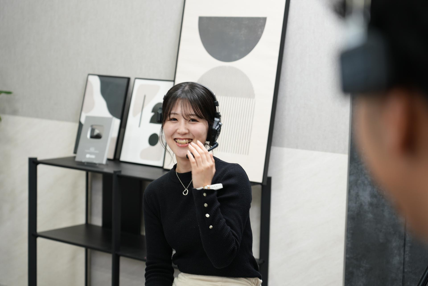しお: 私は主にFD(フロアディレクター)として、学生MCやクライアントさんとコミュニケーションを取りながら、配信が滞りなく進むように現場を回しています。 具体的には、カンペを使って出演者に指示を出したり、ライブ配信の構成を確認したり……。まさにテレビやYouTubeの「裏側」を肌で感じられる仕事ですね。