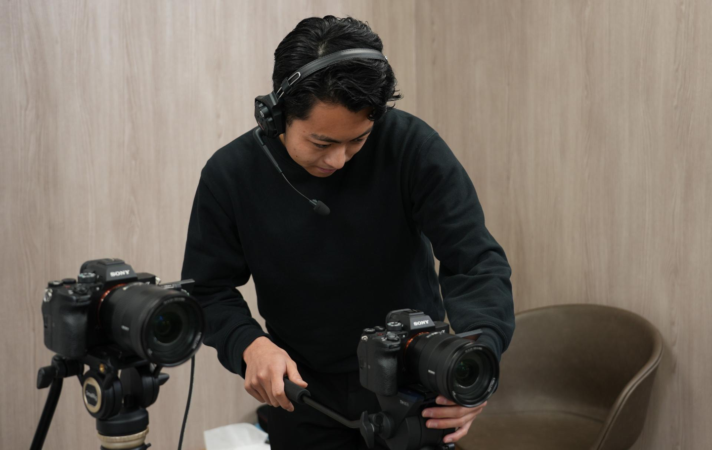 土橋: 僕はカメラマンを担当することが多いですね。ライブ配信中の1時間、とにかく全集中してカメラを動かしています。 ただ撮るだけじゃなくて、「次に誰が話すか」を予測して動かすのがポイントなんです。スイッチャー(画面切り替え担当)の方と息を合わせて、自分の予測通りにカメラワークが決まった時は、本当に面白いですよ!まさにカメラの醍醐味です。