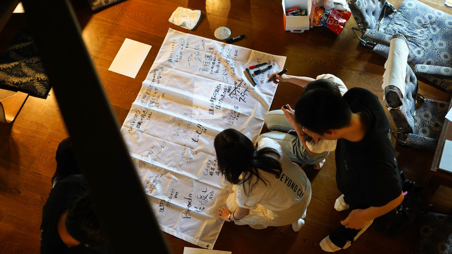お腹も満たされてきたところで、いざ、グループワークへ。メンバーの過去を知る・理解することを目的に取り組みます。お題は「【3分番組】Beyond Cafe’s Memberライフストーリー を作ろう!」。メンバーの半生を紐解き、3分間にまとめて発表しました。
