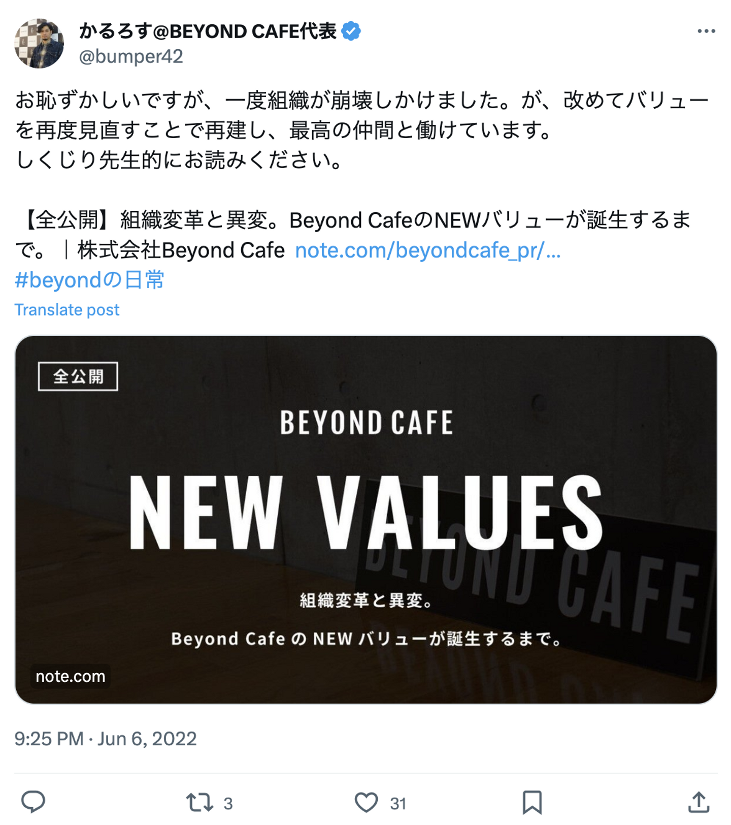 こちらのストーリーは、Beyond Cafe公式note『BEYOND MAGAZINE』を転載したものです。こんにちは!Beyond Cafe広報の青木です。2022年6月6日、株式会社Bey...
