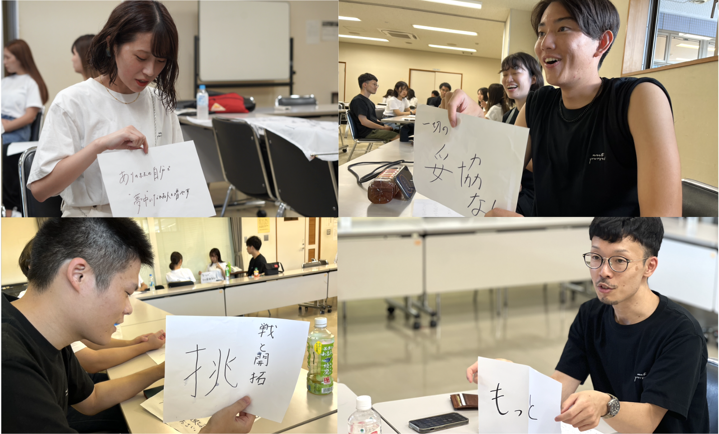 キャチフレーズを考えるなど、お互いのこと、自分のことを知るきっかけとなったと共に、他の人のことも知ることができてとても印象に残る体験となりました。自分の掲げた目標を達成するために頑張ります。