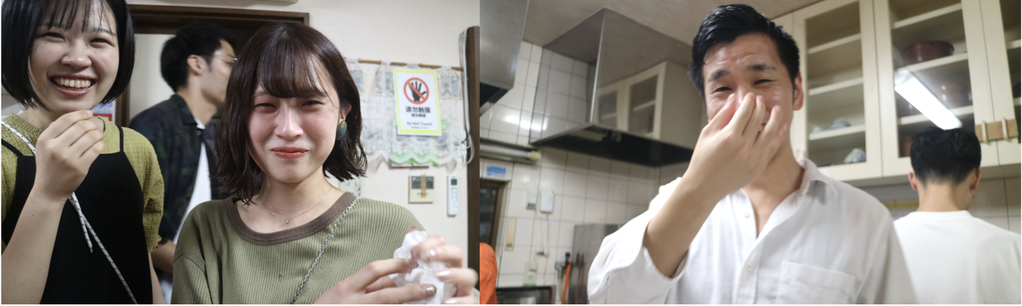 玉ねぎに目と鼻をやられながら頑張りました。「いたーーい!」