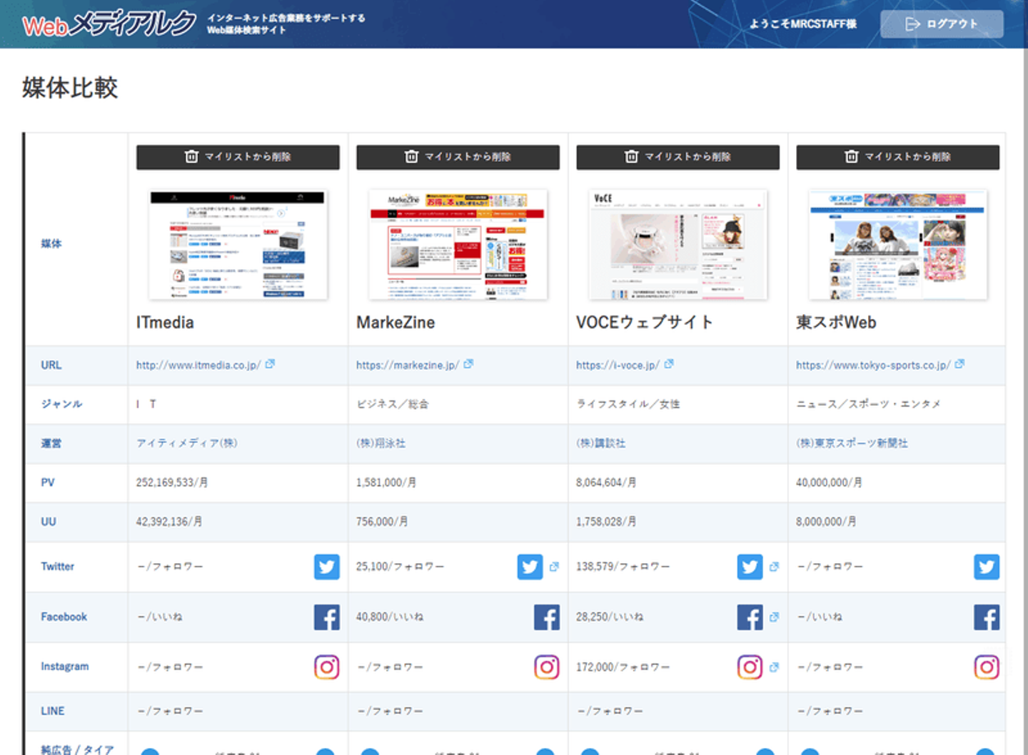 また、メディア・データ電子素材版として、csvデータの提供も行っています。こちらは企業の広告媒体データベースとして活用いただいています。