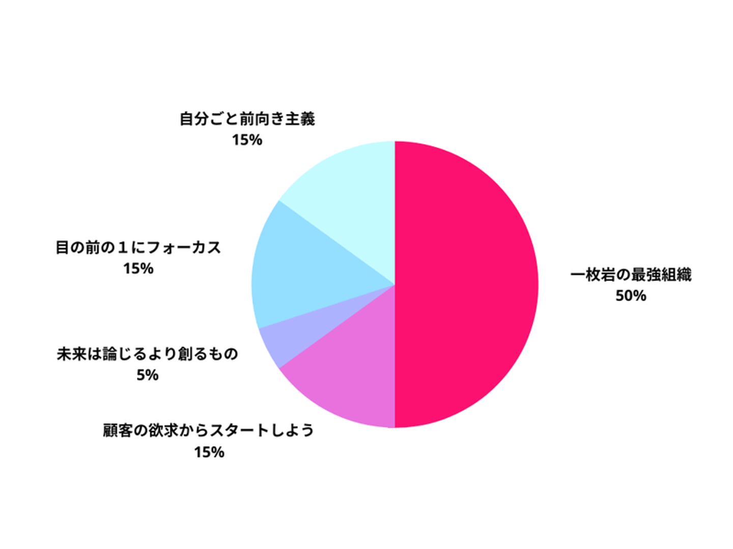 なんと、「一枚岩の最強組織」が1番好きという回答が50%という結果になりました。社員一丸となり、日々業務や新たな施策に取り組んでいるビルコムらしさがこの結果にも現れていると思います!「一枚岩の最強組織」が好きな理由としては、下記内容が挙がりました。