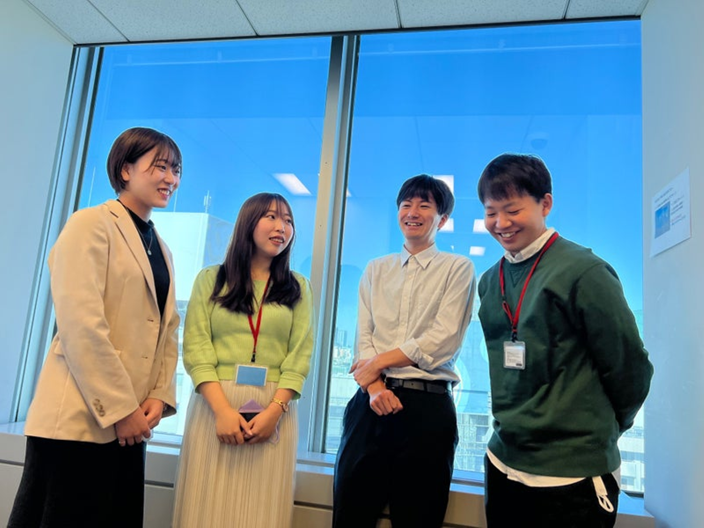 こんにちは。コーポレートコミュニケーション局の川島です。今回は、2021年4月に新卒で入社し、現在社会人2年目としてビルコムで活躍している同期4名の座談会を開催しました!各部署に配属されてから日々業務に勤しみ、同期で集まる機会がなかなかないとのことで、座談会ではビルコムに入社した時の想いや日々の業務、今後のビジョンについてざっくばらんにお話しいただきました。