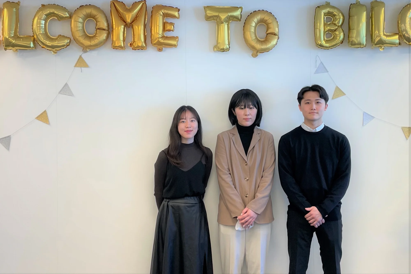2023年1月某日、ビルコムでは内定者6名を招いたWelcome Dayを開催しました。当日実施した内定者座談会の模様をお届けします。第1弾では、竹内美怜さん、佐藤さくらさん、長崎怜生さんの3名にインタビューをしました。