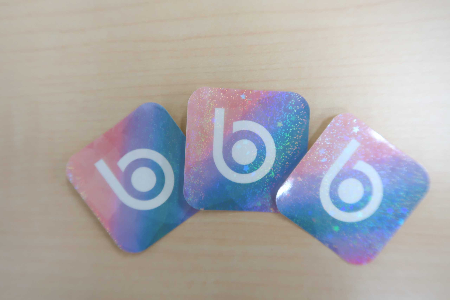 前回はオリジナルのロゴステッカーを作成したので次回は目立つステッカーが良いなということで、採用チームで話し合った結果、キラキラステッカーに決定!