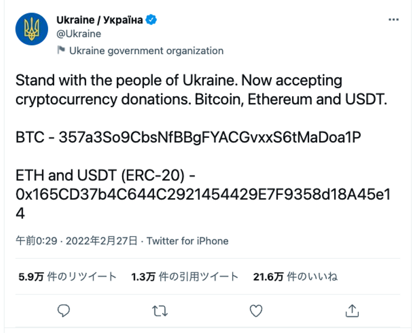 ウクライナ政府のツイート