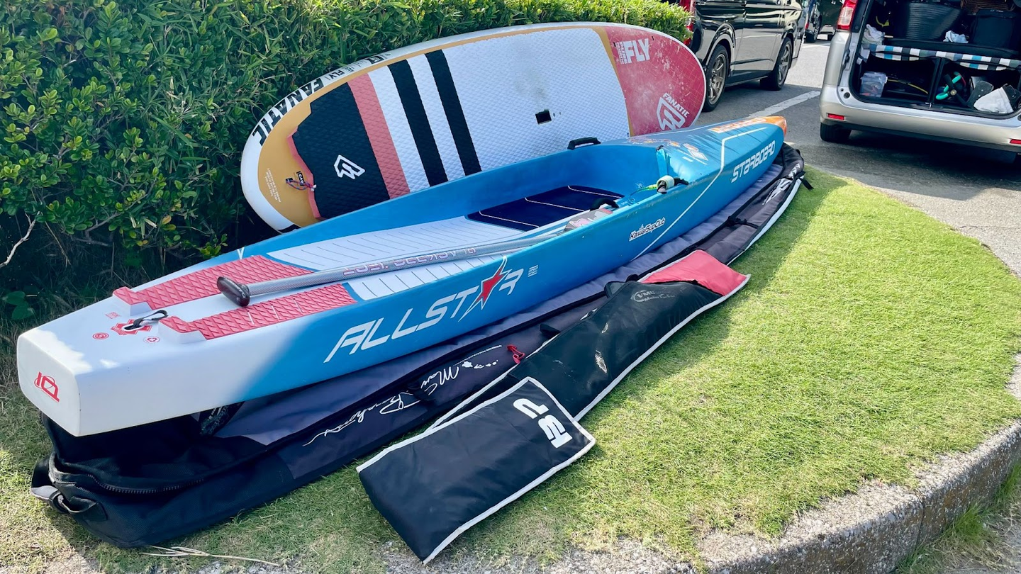 SUPで必要な道具を運ぶところからスタートします!