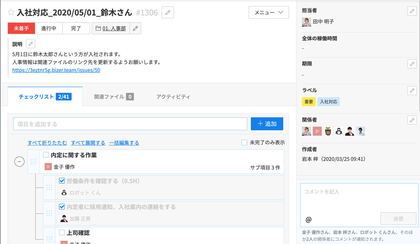 『Bizer team』はチームを対象にしたシンプルな機能で、日々のタスク情報を「蓄積」していくことが可能です。導入企業さんからは「引き継ぎが楽になった」「リモートワークをしやすくなった」「メンバーが休んでもカバーできる」といった声をいただいています。