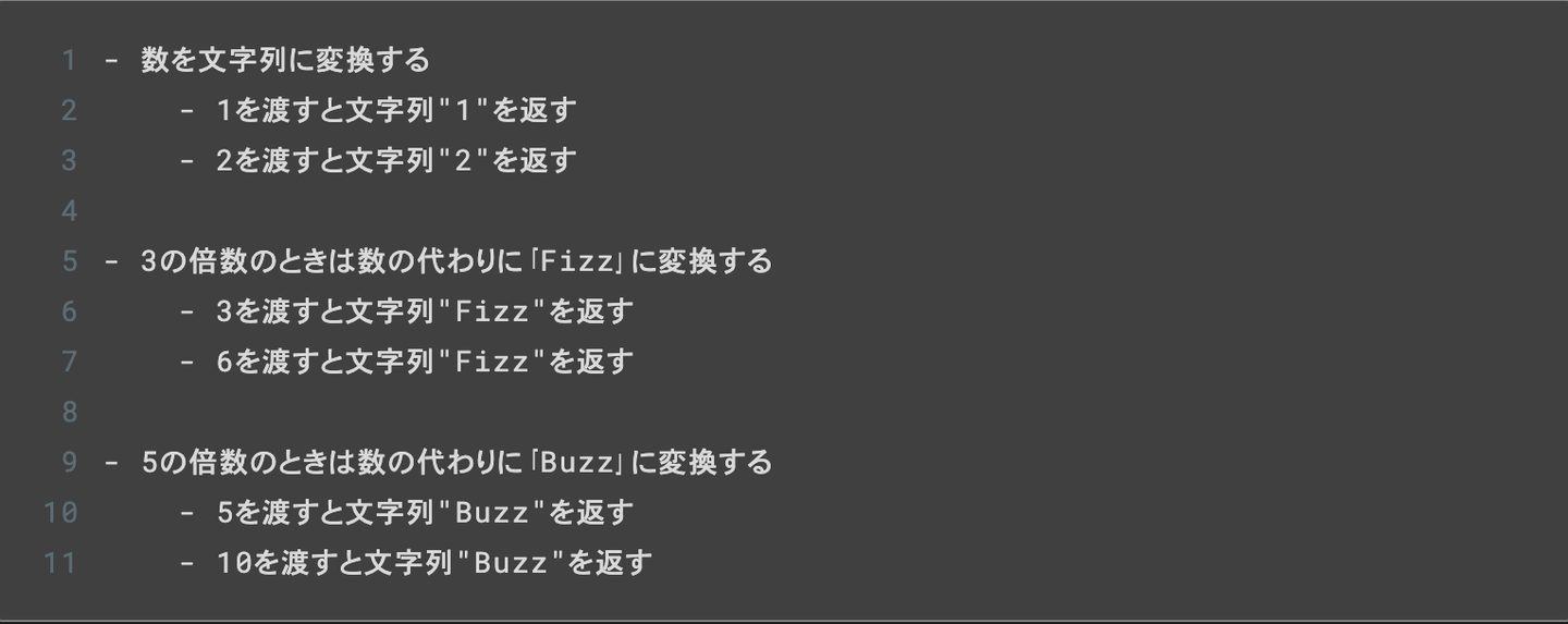 - ひとまずテストが通るよう実装してみる(仮実装)
