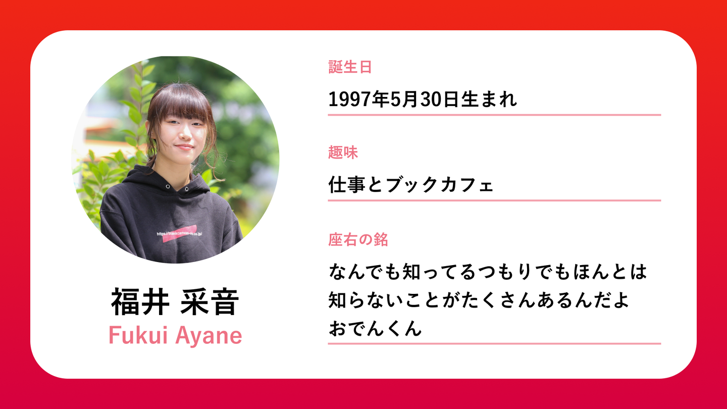 こんにちは、blank canvas代表の福井采音です。
