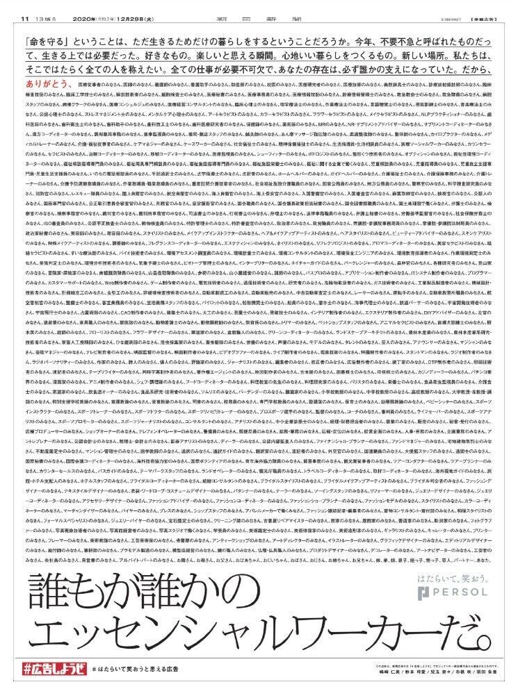 プログラムの受講中にあった新聞広告の募集企画に、受講生仲間と一緒に参加したり(ほとんどメンバーが作ってくれて私は盛り上げ役くらいだった記憶…)、当時コロナ真っ只中で、同期の仲間やメンターやつながりのあるデザイナーに力を借り、コロナ禍の介護職を支援するプロジェクト「#ケアワーカーをケアしよう」を立ち上げました。