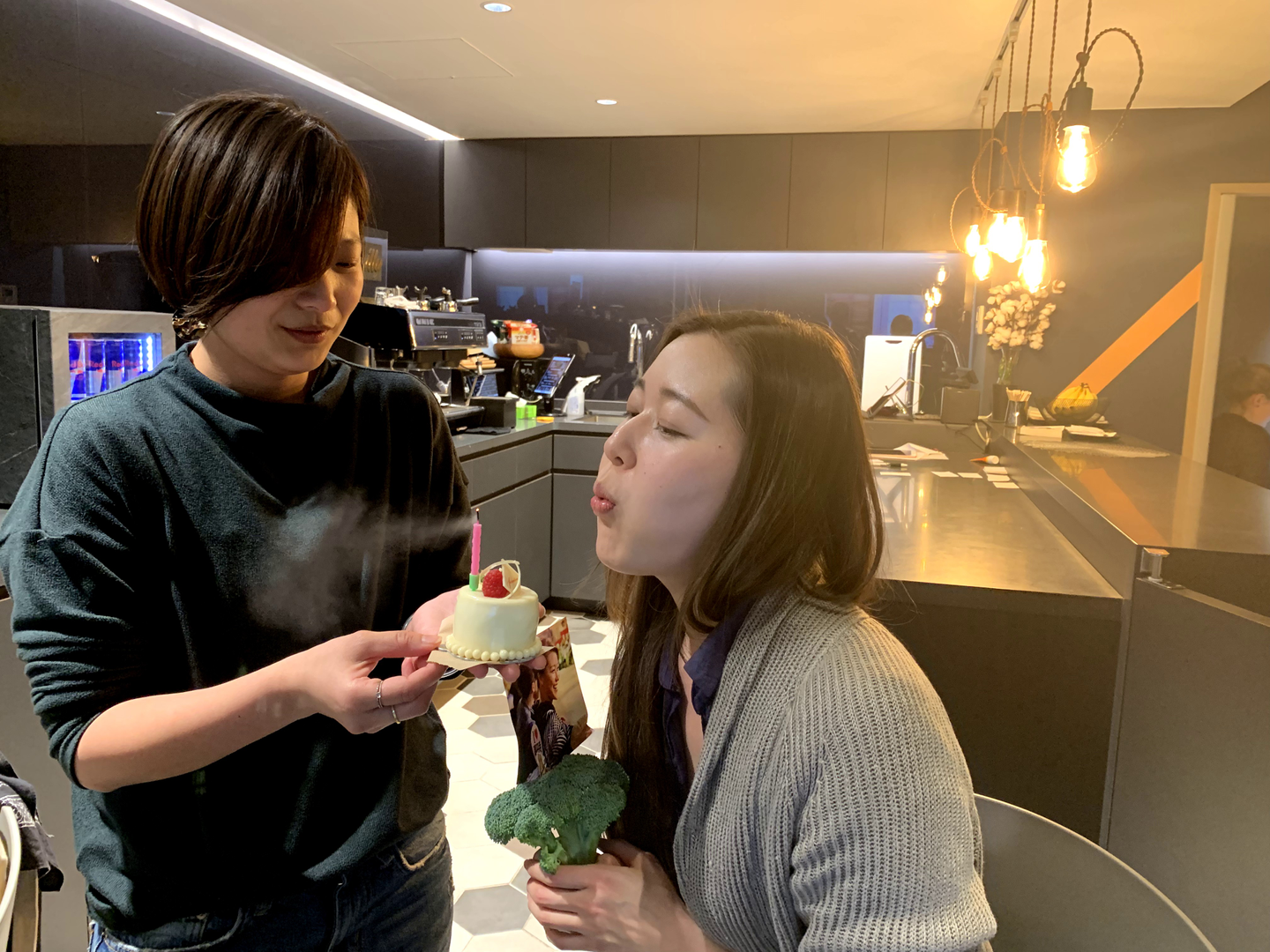 本日、スタッフMaiのお誕生日に、サプライズケーキとブロッコリーのプレゼント!