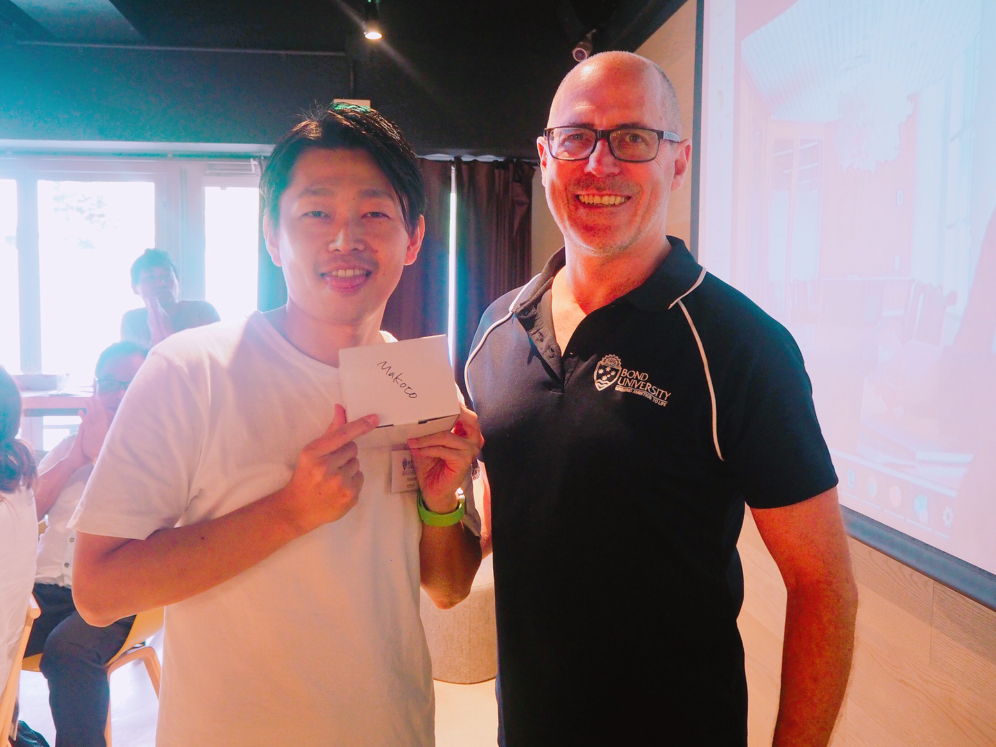 では最後に我々の大好きなチームメンバー、そして私の師匠、イケメンのマコトさんの教授とのツーショットを載せて終わらせていただきます!!(実はマコトさんはボンド大学出身!)