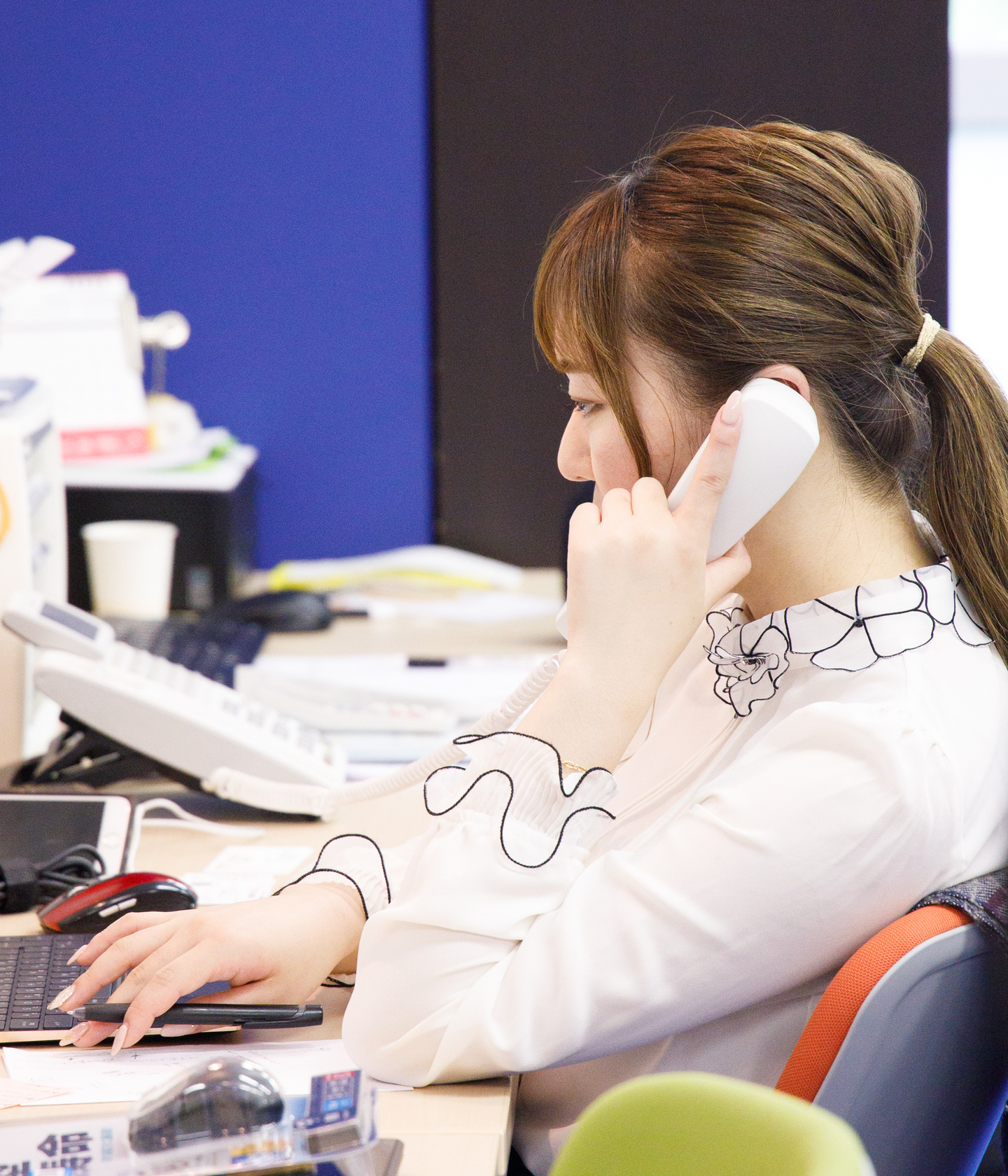 ▲代理店やお客様からの問い合わせに対応する奥村さん