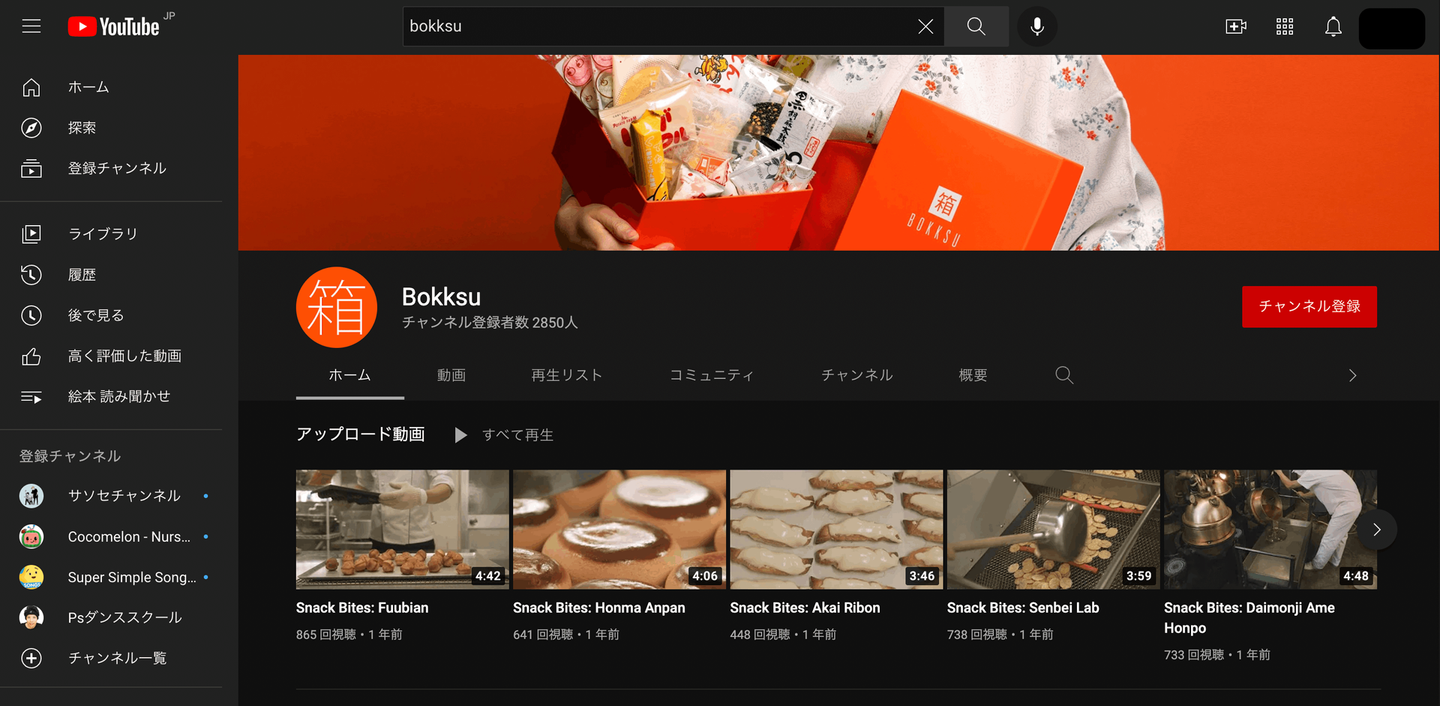 最後にBokksuのYoutubeチャンネルのご紹介です。現在は主な動画コンテンツはインスタグラムやTikTokに投稿しているのでYoutubeの更新頻度は高くないのですが、長年お世話になっている日本のお菓子メーカーさんを取材させていただき作成した動画Snack Bitesシリーズのフルバージョンは、このYoutubeからご覧いただけます。