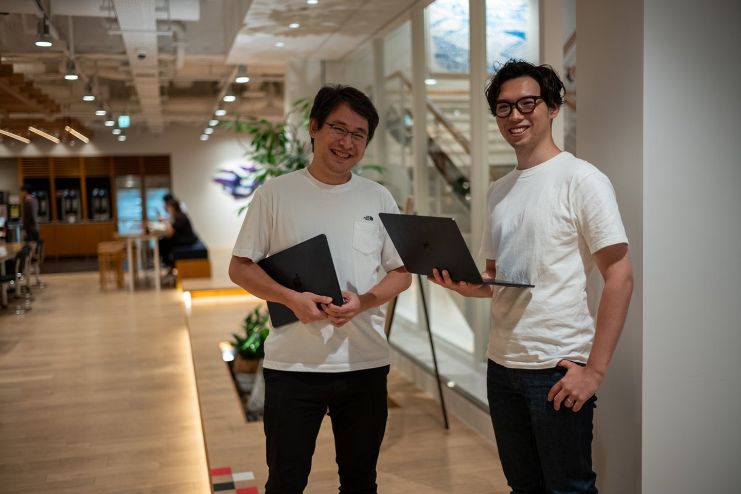 東京のオフィスで、エンジニア中村さんと。