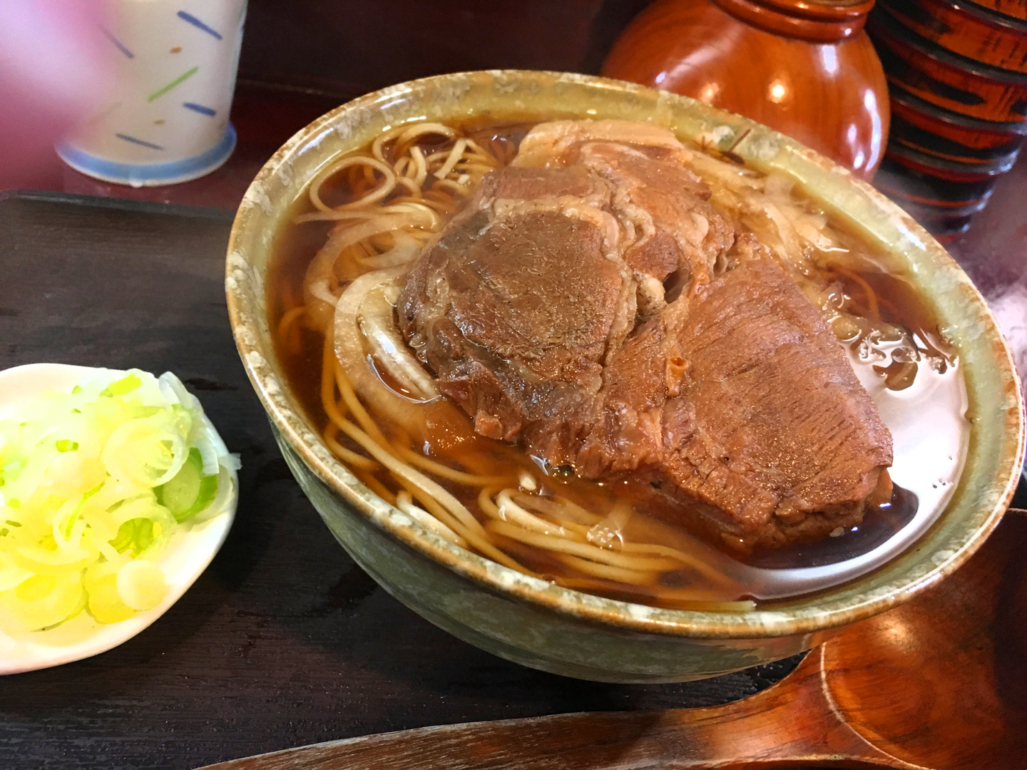 鳥や豚の豪快な肉を選べる肉そばのお店。麺の量は200g~800gまで選べます。つゆはあっさりめだけど細い麺と絡まっておいしい。店主さんが1人でやっているため、注文のタイミングと、お釣りが出ない工夫が必要です(笑)