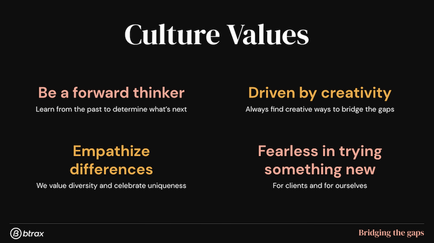btraxの4つのカルチャーバリュー