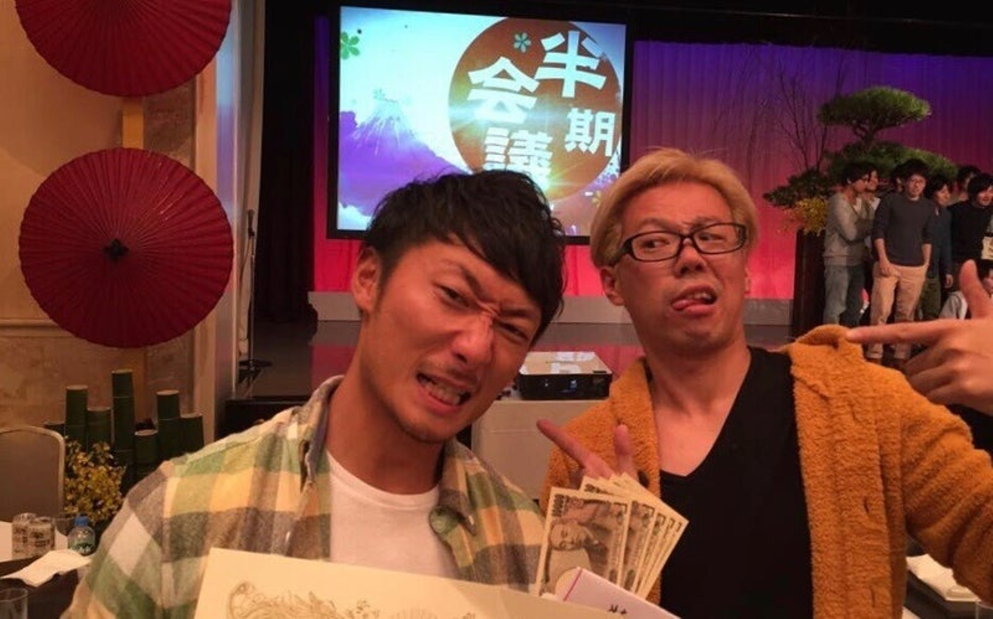 ▲社内で表彰されたときの写真(左が私、右がCEOのやましょー)