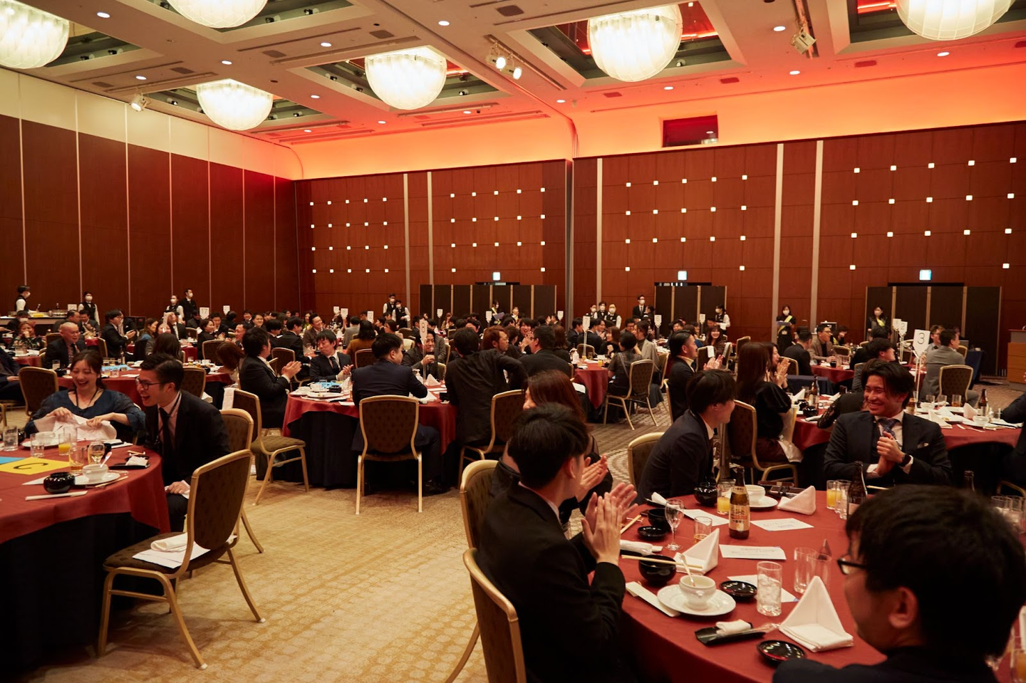 総会が終わると会場は和やかな雰囲気に包まれ、お酒や料理が各テーブルに運ばれていきます。