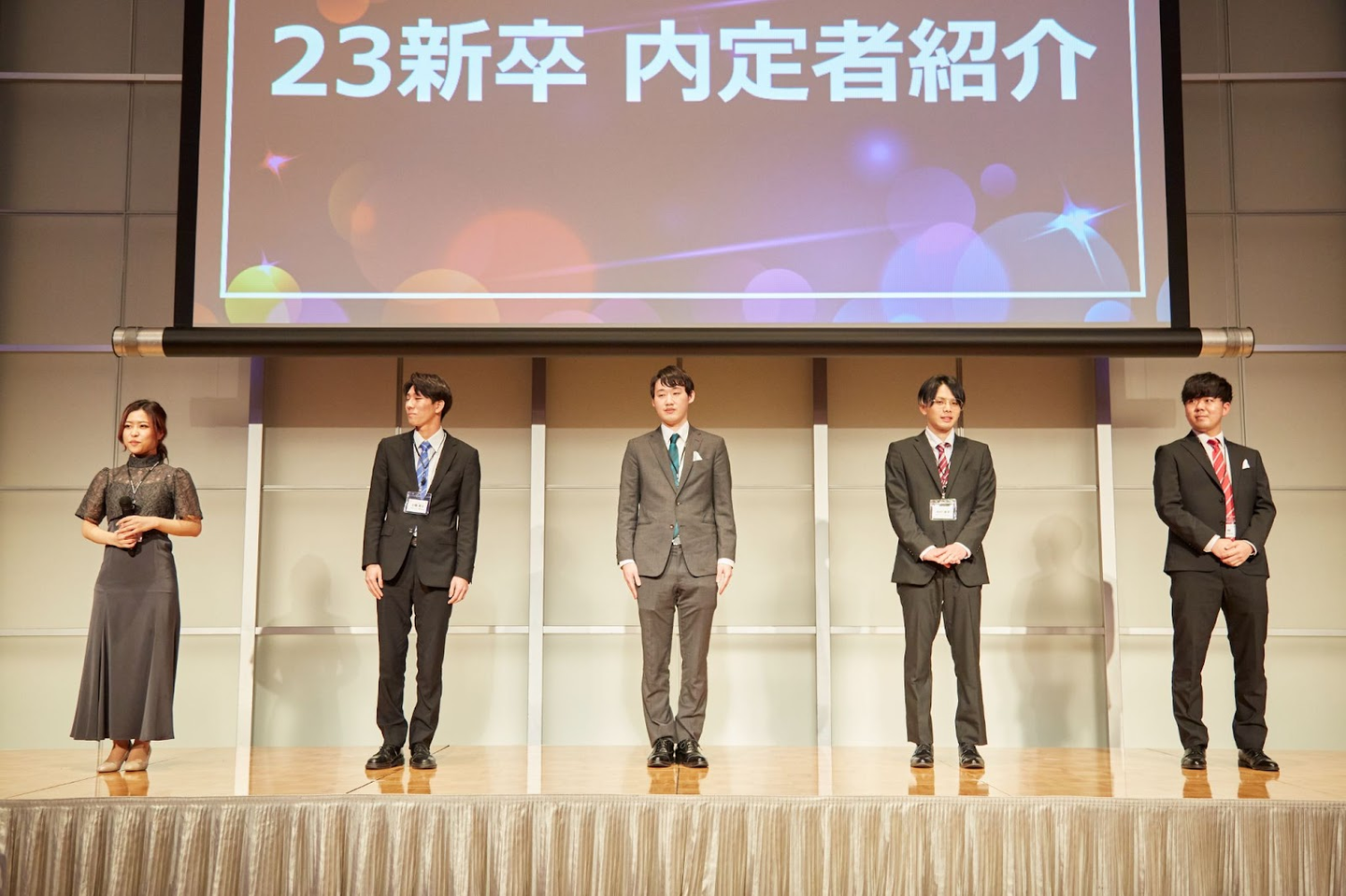 何が起きるのかと皆が期待していた中、ステージに登場したのは21,22卒の新卒社員と23卒の内定者。