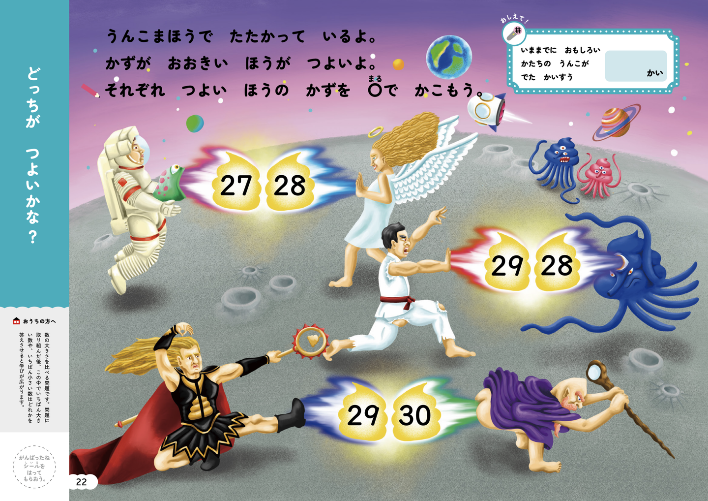 複数人のイラストレーターで分担する場合、もともとあるイラストにタッチを合わせて描く、というケースもありますが、うんこドリルシリーズの場合、基本はあまり合わせることは重要ではないと考えています。編集や作家さんが〝どういうドリルにしたいか〟ということが大切で、自分の描きたいタッチというより、一番その思いを実現できるタッチで描くということを意識しています。