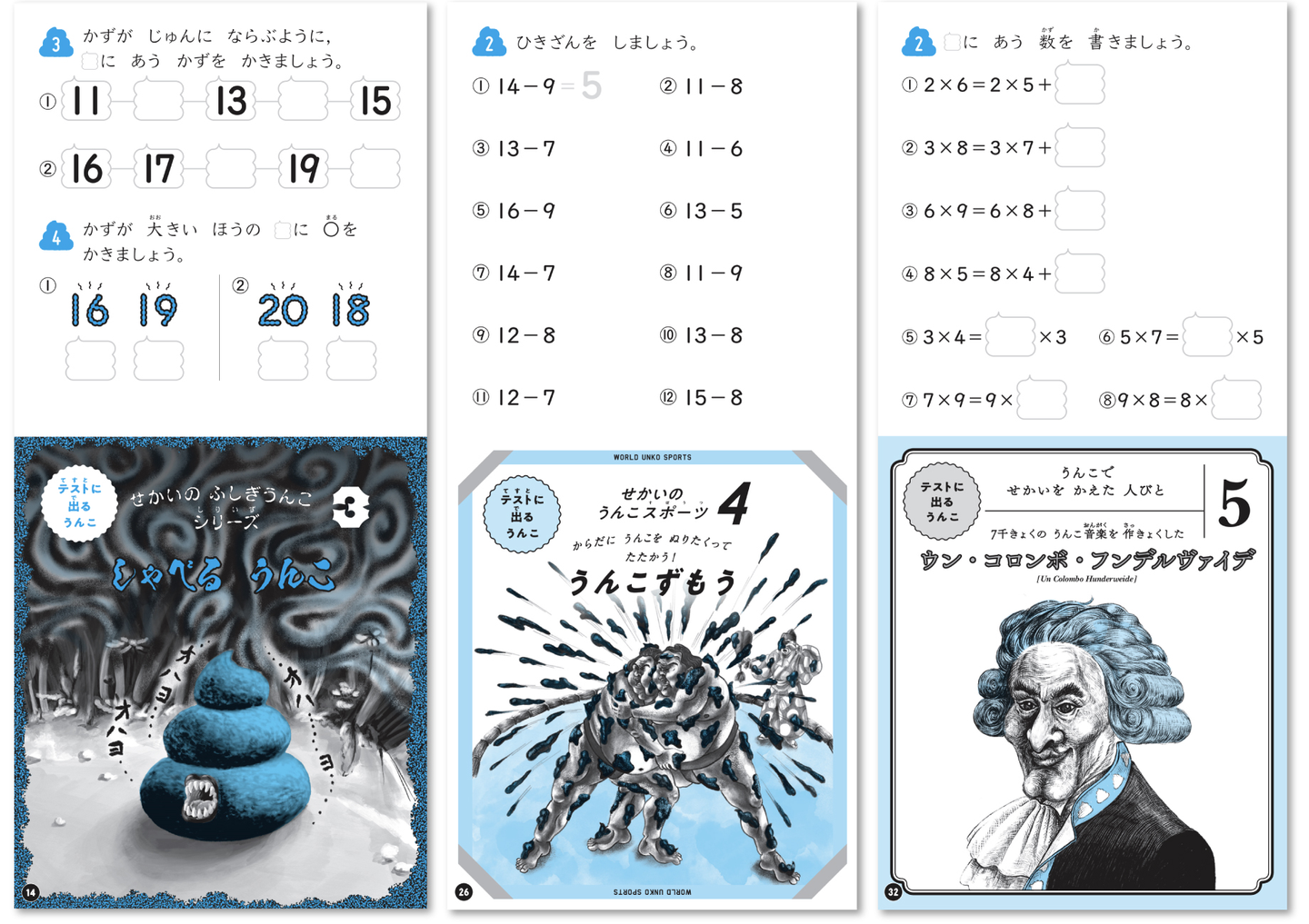 ▼穂坂さんが担当したうんこ計算ドリルの中のイラスト(一部)