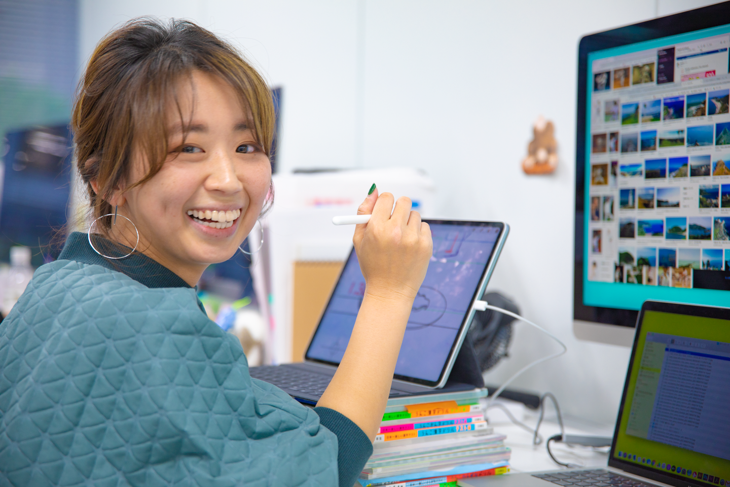 今の上司はデザイン室長ですが、自分もプレイヤーでありながら、みんながやりたいことを実現するために動いてくれる人でもあり、見ている先や目線が同じだと感じます。そういう人が上司だという環境に驚きました。