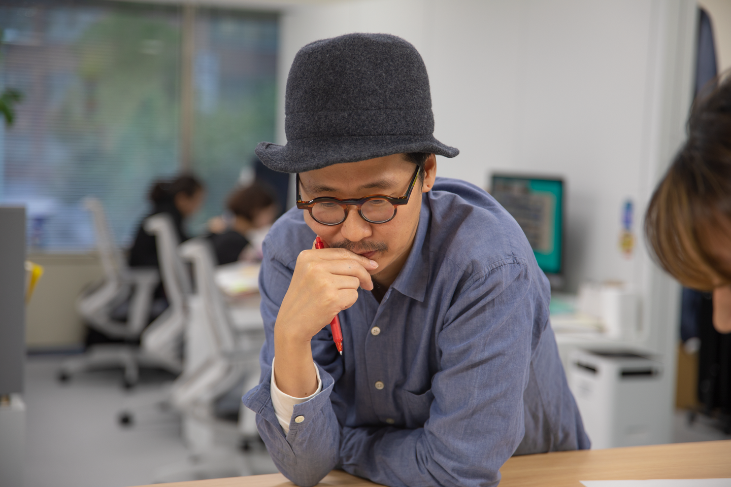 ▼デザイン部・室長の小寺練さん。2017年に第一弾として発売された『うんこ漢字ドリル』のデザイン・イラストを全て担当した『うんこドリル』とそのキャラクター「うんこ先生」の生みの親。現在はうんこドリル関連のデザインを手掛けながら17名が所属するデザイン部の室長としてチームマネジメントを行っている。