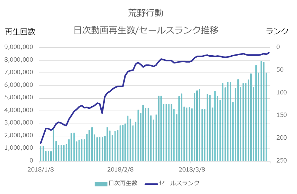 日次の動画再生数とセールスランクの推移を比較してみます。