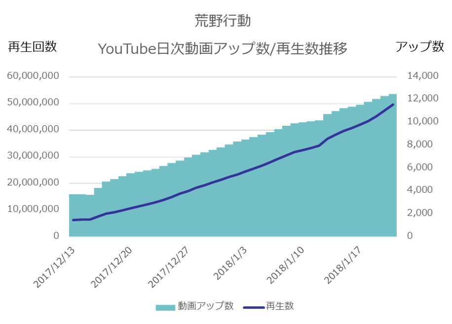 動画再生数推移も合わせて見てみます。