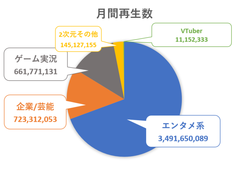 TOP200までの月間再生数からシェアを算出した所、VTuberの月間再生数は全体の”0.22%”という事が分かりました。