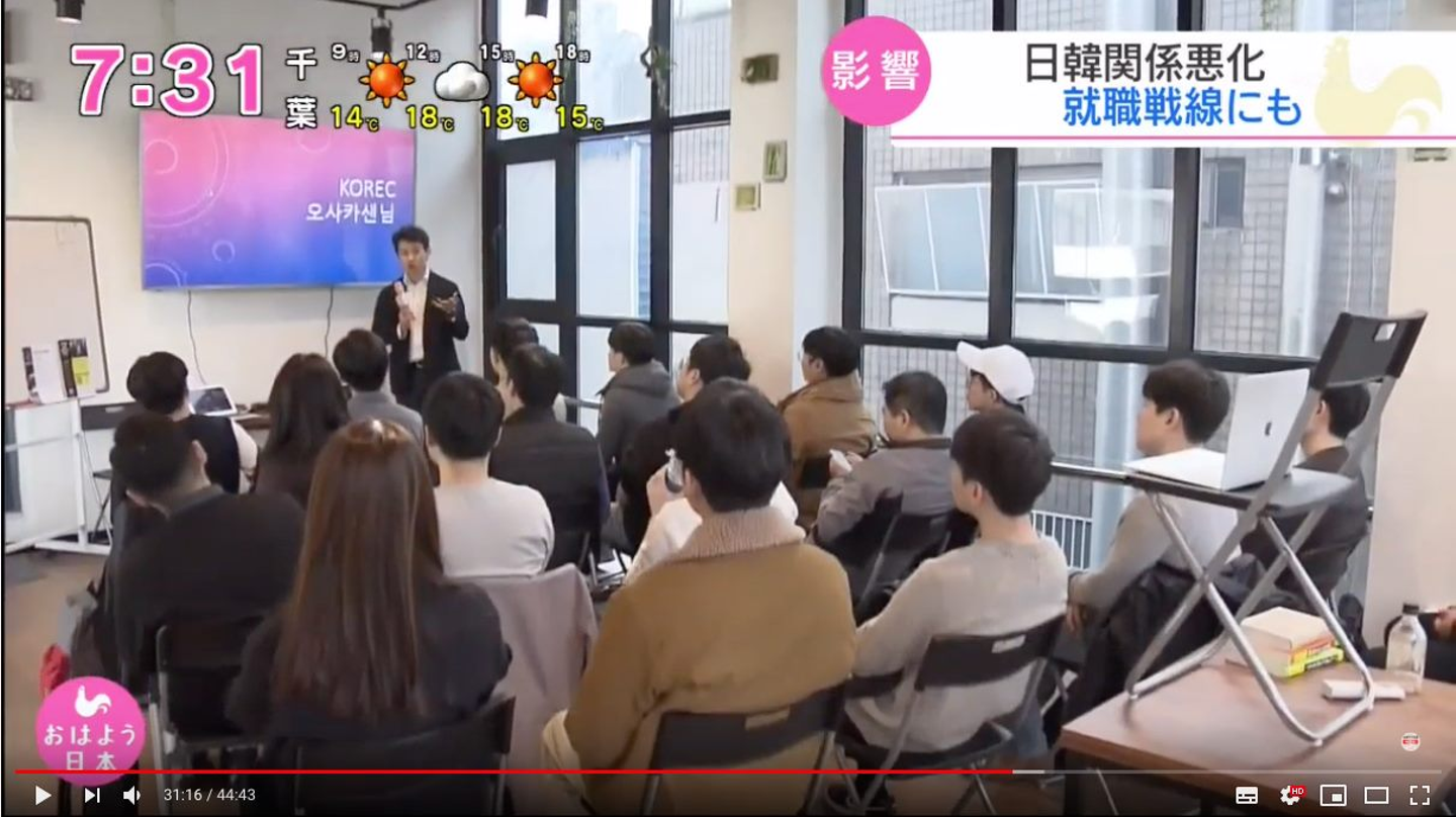 日韓関係と韓国就活をテーマに、弊社の『日本就職スクール KOREC』を取材いただき、スクール内のイベントの模様も放映いただきました。