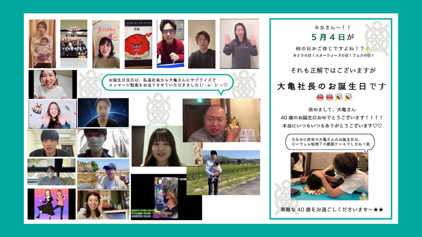 今回は、社員一同よりサプライズ動画をご用意させていただき、