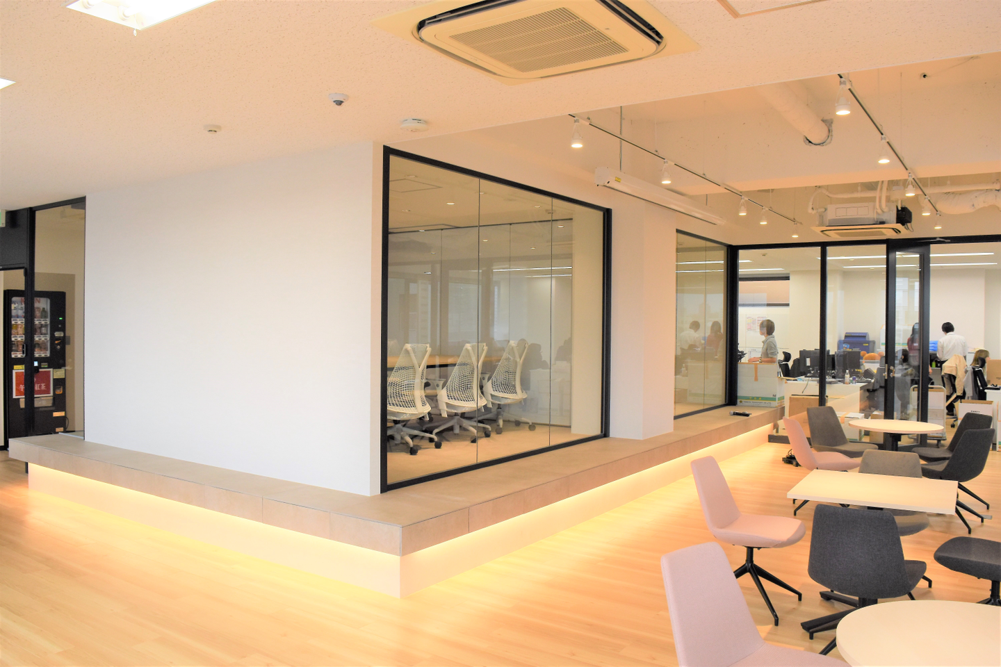 真ん中のパーテーションは可動式なので、大人数での会議の際は