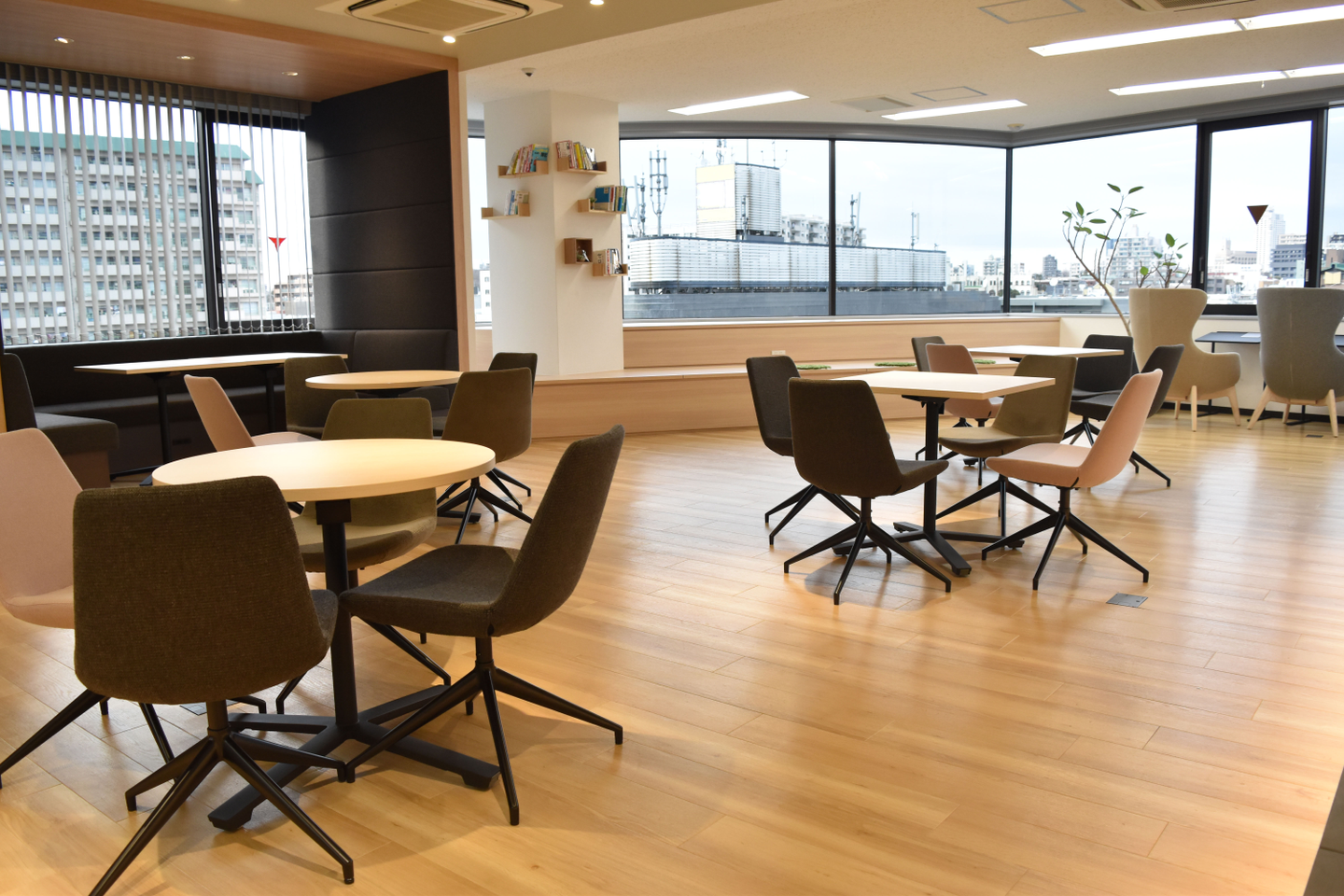 コミュニケーションスペースを広くし、執務室にフリーアドレス制を導入しました。