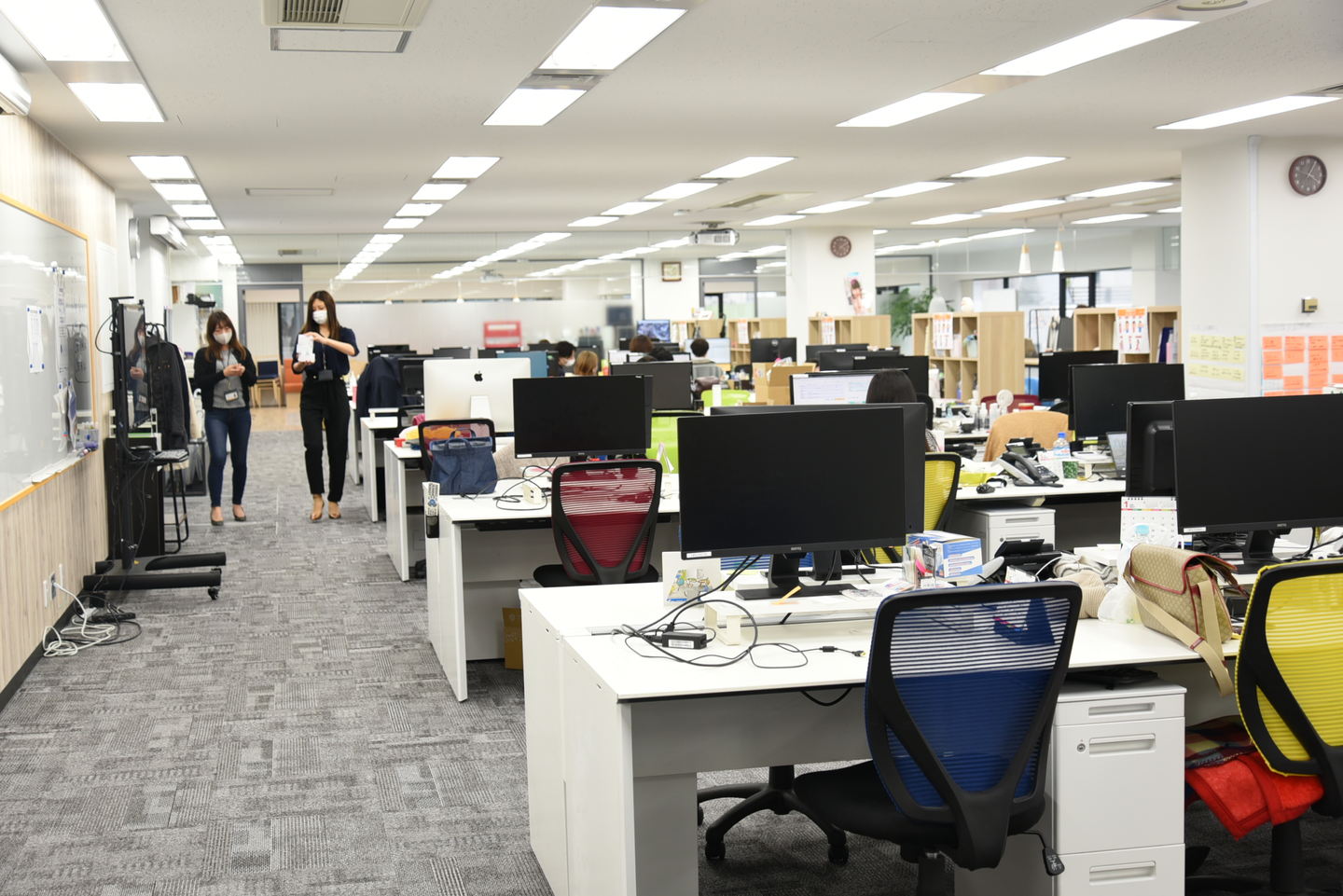 このようなフリーアドレス席を設け、他の部署の仲間たちとの連携やコミュニケーションがとりやすい環境づくりも徹底されていました!