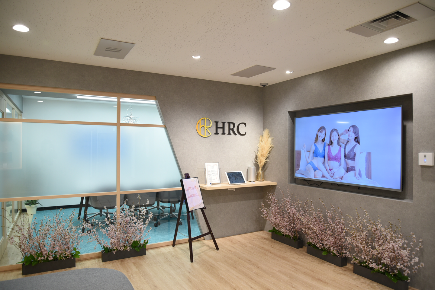 ディスプレイにはHRCが販売している商品の魅力をたっぷりと詰め込んだ綺麗な映像が流れていて、