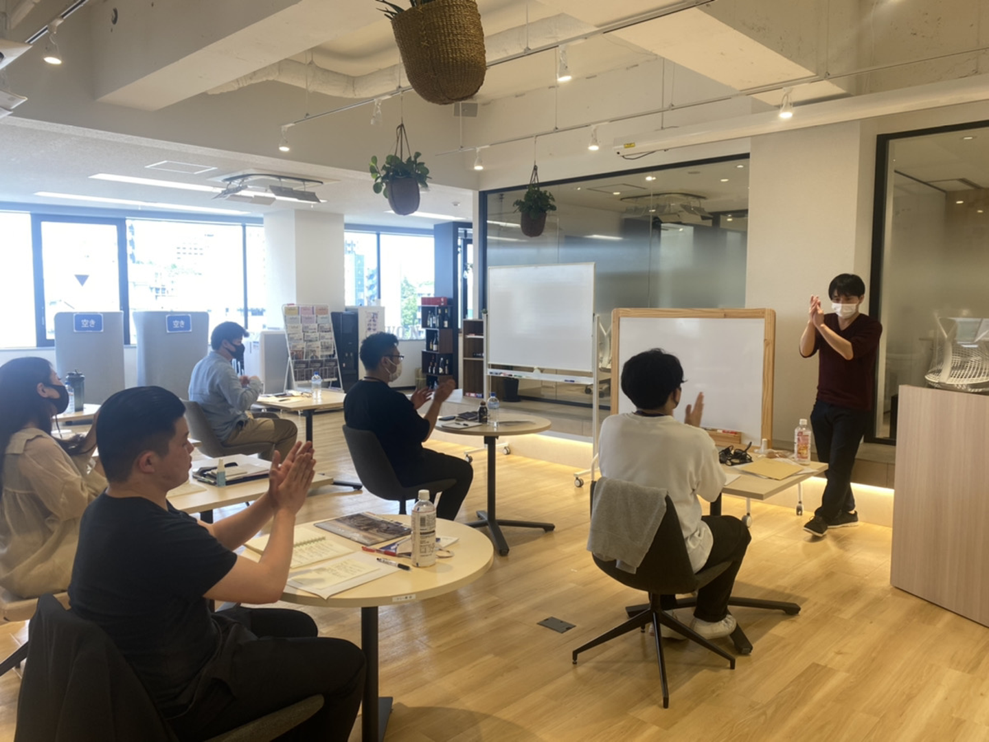 緊急事態宣言により、一部の社員がリモートなので人数は少なめですが、