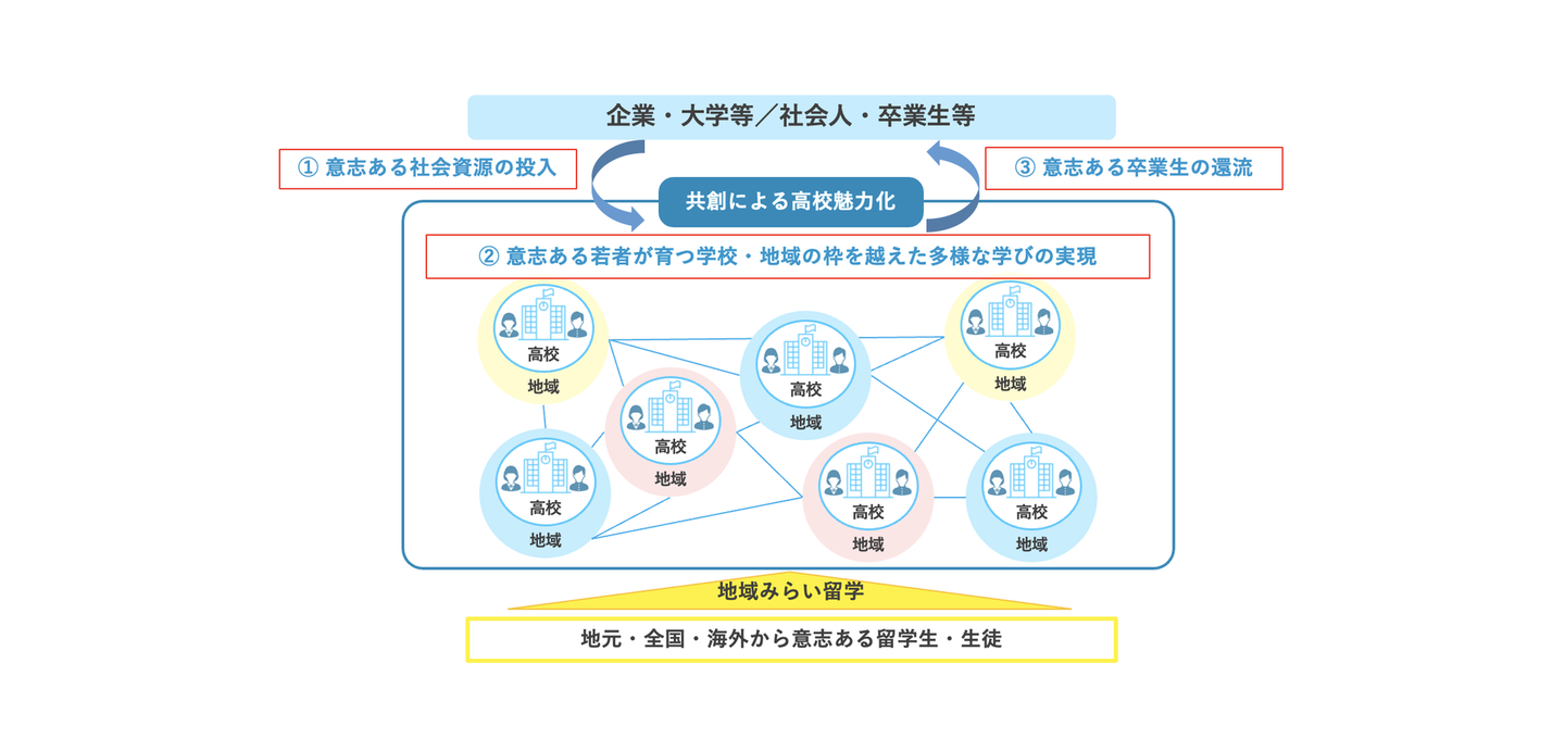 弊財団は「意志ある若者にあふれる持続可能な地域・社会をつくる」というビジョンのもと、都道府県の枠を越えて地域の特色ある公立高校に入学し、学んでもらう「地域みらい留学」事業を中心に取り組んでいます。変化の激しい時代に対応できる人材を育成していくためには、市民・自治体・民間企業・NPO・大学などの多様なステークホルダーが学びに関わり、社会全体で支えていくような「学びの社会連携」が必要です。私たちは、