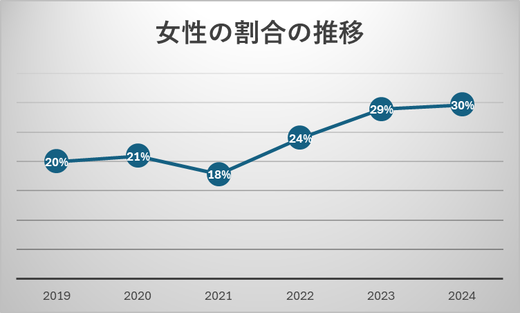 2022年には、マネジメントラインやスペシャリストライン等、 多様なキャリアパスを設けたことで、管理職やスペシャリスト職の女性比率も少しずつ増えてきました。実際に子育て中の女性社員が、スペシャリスト職として活躍しています!