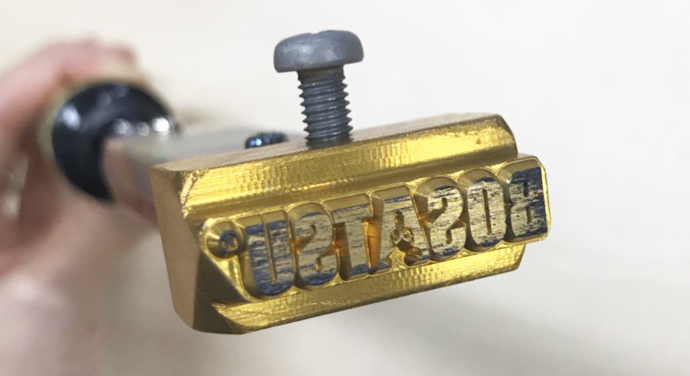 そこで制作したのが“竹とんぼ”です!まずは真鍮の焼印をタイガー刻印製作所さんにお願いしました。