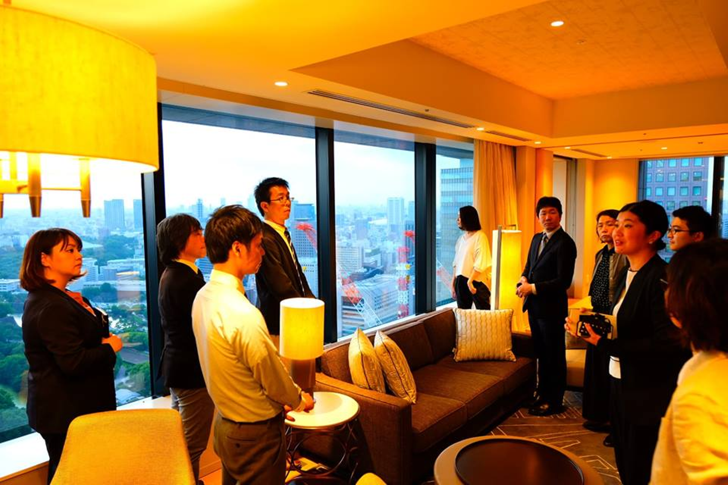 ホテル内の施設や代表的なタイプのお部屋をご案内(ショウ・ルームといいます。)いただきました。めったにお目にかかれないViewがあるとのことで皆ワクワクして参加しました。