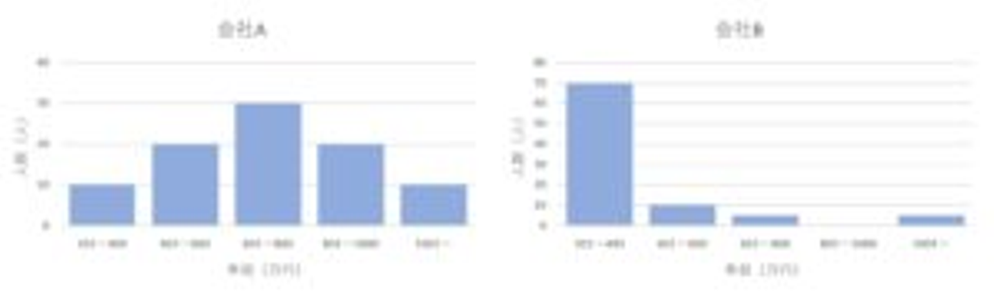 ここからは、分かりやすく、会社Aと会社Bを例に出して、それぞれの値を考えていきましょう。会社A、会社Bの年収と人数の内訳は、以下の通りです。